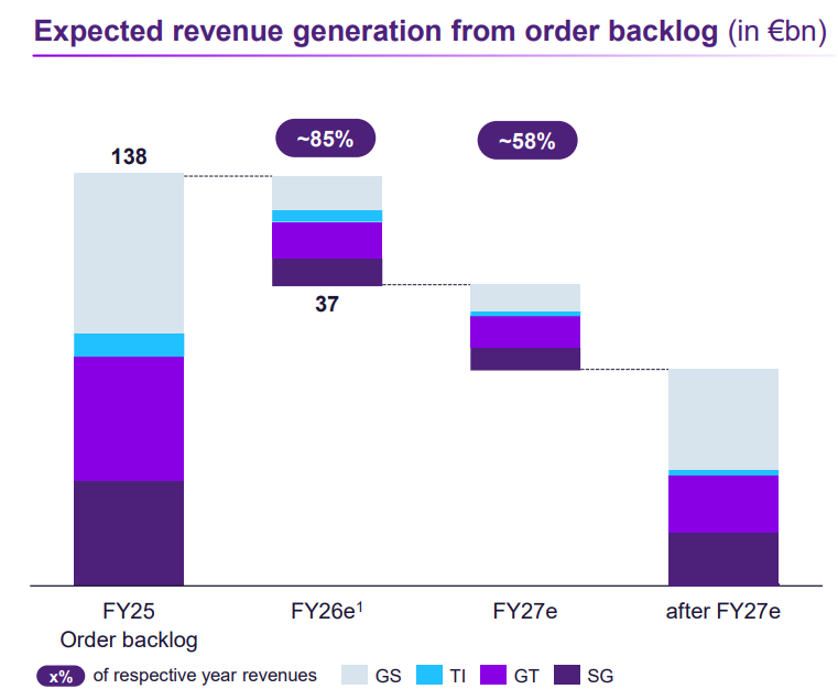- Siemens Gamesa (26.2% of revenues) remains loss-making at –13% in FY25 but is progressing along its restructuring path, with management expecting break-even in FY26 and 3–5% margins by FY28.